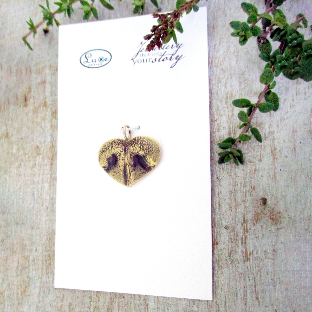 4. 14 Karat Solid Gold Heart Shape Dog Nose Impression Pendant - Medium