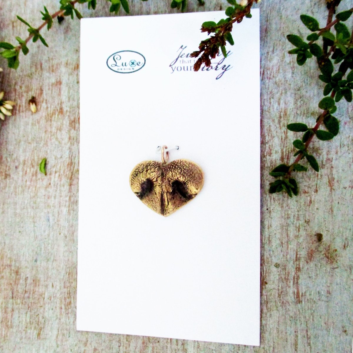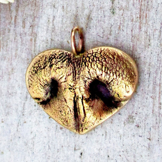 15. Your Dog's Nose Impression Heart Pendant in Solid Gold