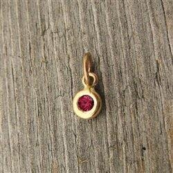 Gorgeous rubies are a deep reddish pink color. This charm can be added to any necklace or bracelet to represent someone born in July. This solid gold pendant features a flush set genuine Ruby gemstone. This faceted Ruby gemstone is the birthstone for July. Birthstone prices vary depending on the cost of the stone. The pictures in Alternate Images are there to show the scale of the product. Colors and other details may vary.