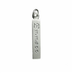 This Gold Name Charm comes in Yellow Gold, White Gold or Rose Gold. We have both Uppercase and Lowercase letters, so enter your customization exactly as you would like it to appear on your pendant by using capital letters where you want them. We have the following characters in our cursive font: A B C D E F G H I J K L M N O P Q R S T U V W X Y Z a b c d e f g h i j k l m n o p q r s t u v w x y z & . - We also have a heart symbol. If you want to order it, please use the "$" sign where you would like the heart to appear. You may also mention that you want a heart in the 'additional comments' box. We can make a dash or comma but in most cases a dot looks better.