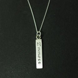 Gold Cursive Personalized Vertical Bar Pendant.