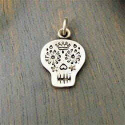 This sugar skull charm is our silver version of the skulls made from sugar and decorated with designs made to honor the dead and are left on altars to the deceased. They are often decorated with Marigolds, the traditional flower used in the Day of the Dead celebrations. Sugar skulls are treats that can be eaten. You should not eat our sterling silver sugar skull charm, however.