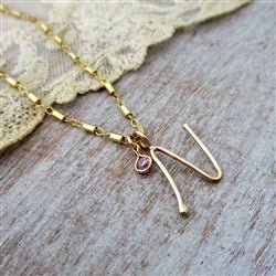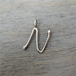 14K Gold Handmade Script Initial Pendant Letter N