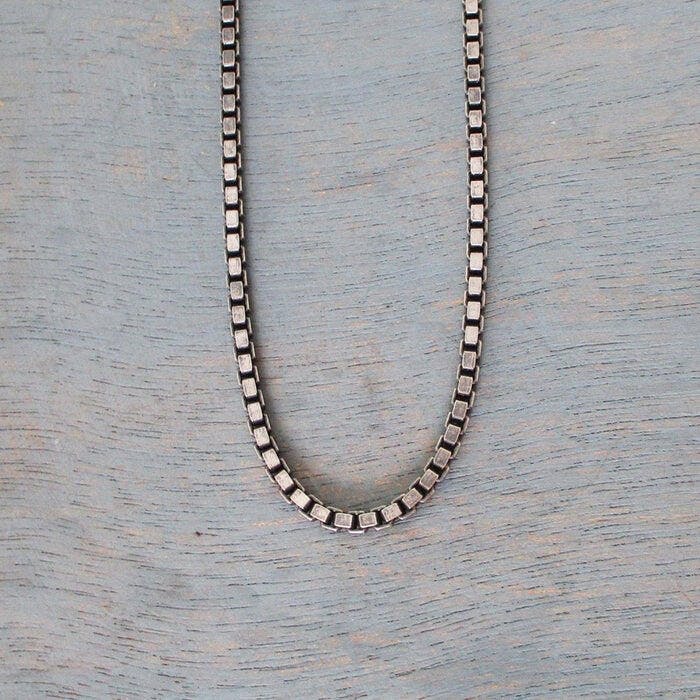 Sterling Silver Oxidized or Shiny 2.5mm Box Chain, 8.5" to 28" Lengths