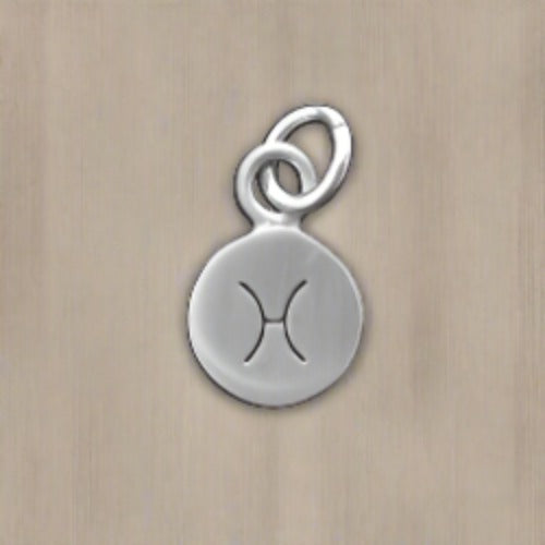 Quick View Sale Loading... Loading... Loading... Loading... Sterling Silver Zodiac Disc Charm PISCES $55.00 - $-55.00 14mm L x 9mm W x 1mm D Sterling Silver Charm Oxidized & Matte Finished Sterling Silver Zodiac Disc Charm PISCES February 19 - March 20 This silver zodiac charm shows the stylized sun symbol for the sign of Pisces. The Pisces sign is symbolized by two fishes traveling in opposite directions. The silver Pisces charm itself is in the form of a small silver disc. This Pisces Zodiac charm can be part of a collection of charms on a necklace or bracelet, or worn on it's own. Those born under Pisces are said to be altruistic and intuitive. Items are not necessarily shown actual size and may be enlarged to show detail. All screen resolutions are different so please note actual measurements. Click on Alternate images to see more details. Alternate Images may be slightly different from style, but represent the scale accurately. You can also purchase a 14 Karat Gold PISCES charm, please inquire for prices. Default Title - $55.00 Quantity - + You can't add more of this item to the cart Add to cart This item is a recurring or deferred purchase. By continuing, I agree to the cancellation policy and authorize you to charge my payment method at the prices, frequency and dates listed on this page until my order is fulfilled or I cancel, if permitted. View all details Sterling Silver Zodiac Disc Charm PISCES $55.00