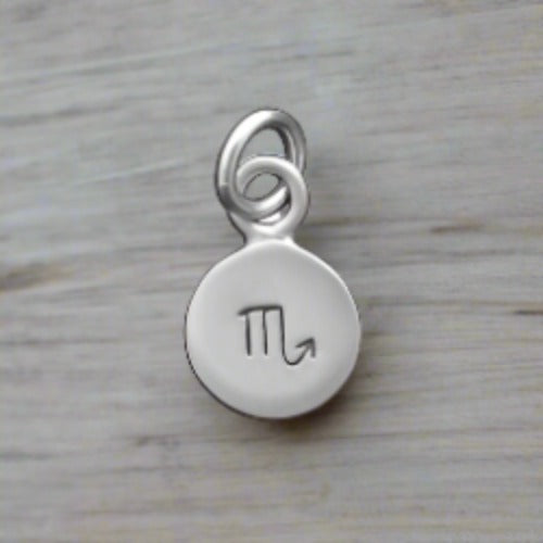 Quick View Sale Loading... Loading... Loading... Loading... Sterling Silver Zodiac Disc Charm SCORPIO $55.00 - $-55.00 14mm L x 9mm W x 1mm D Sterling Silver Charm Oxidized & Matte Finished Sterling Silver Zodiac Disc Charm SCORPIO October 23 - November 21 The sun sign for this silver Scorpio charm is that of the Scorpion. The silver Scorpio charm itself is a small disc. It can be worn on it's own, or in combination with our other sterling silver charms. Scorpios represent transformation and love. Items are not necessarily shown actual size and may be enlarged to show detail. All screen resolutions are different so please note actual measurements. Click on Alternate images to see more details. Alternate Images may be slightly different from style, but represent the scale accurately. You can also purchase a 14 Karat Gold SCORPIO charm, please inquire for prices. Default Title - $55.00 Quantity - + You can't add more of this item to the cart Add to cart This item is a recurring or deferred purchase. By continuing, I agree to the cancellation policy and authorize you to charge my payment method at the prices, frequency and dates listed on this page until my order is fulfilled or I cancel, if permitted. View all details Sterling Silver Zodiac Disc Charm SCORPIO $55.00