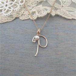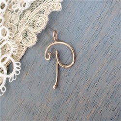 20. 14K Gold Handmade Script Initial Pendant Letter P
