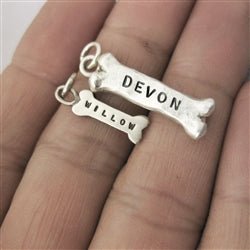 This chunky dog bone charm can be personalized with up to 8 Characters in our Large Font or 12 Characters in our Small Font.