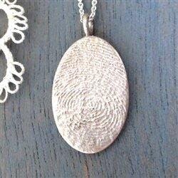 Simply purchase the finger print jewellery that you want, then email a photo or scan of a flat fingerprint to us, and quote your order number in your email. We then create a beautiful, tactile pendant featuring your loved one's print. Often when loved ones pass away, their fingerprints are taken as a record. We can use these prints to create beautiful memorial fingerprint jewellery.