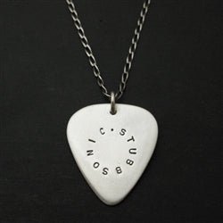 Our solid Sterling Silver Guitar Pick is ideal for the musician in your life, and can really be used on your instruments. Add this guitar pick pendant to a key ring or a chain for a great gift for a musician or music loving dad. This unisex pendant features our large font stamping, and can be personalized with up to 14 characters on each side of the pick, or up to 5 horizontal rows. Enter your personalization in the space provided. You may also describe the layout you prefer in Additional Comments, or just tell us what you want it to say and we will lay it out the best way possible. You may get the back personalized as an option as well.