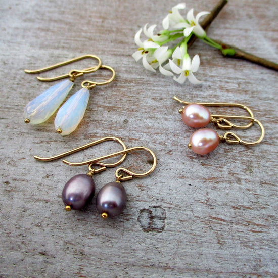 These pearl earrings come in 14/20 gold filled or sterling silver.