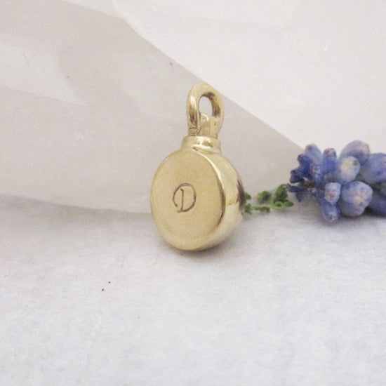 Fill this solid gold pendant with the cremains or ashes of your loved one and keep them next to your heart always. Keep it simple with a gold or gold filled chain or add charms to create a unique and personalized piece that honors your loved one.