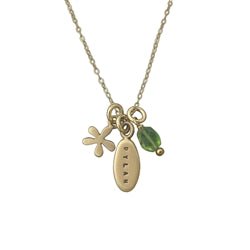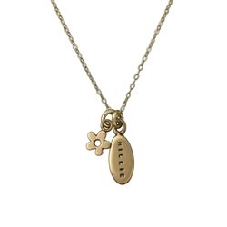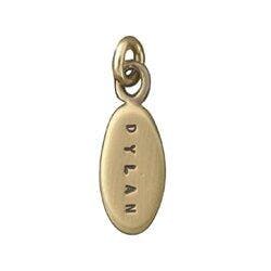 This solid 14 Karat gold oval charm is perfect for a single name.