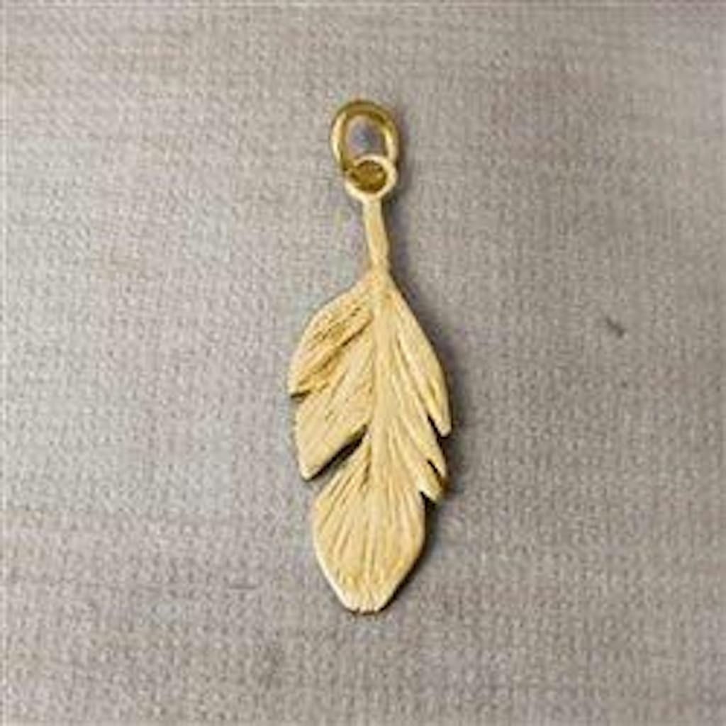 14K Solid Gold Feather Charm
