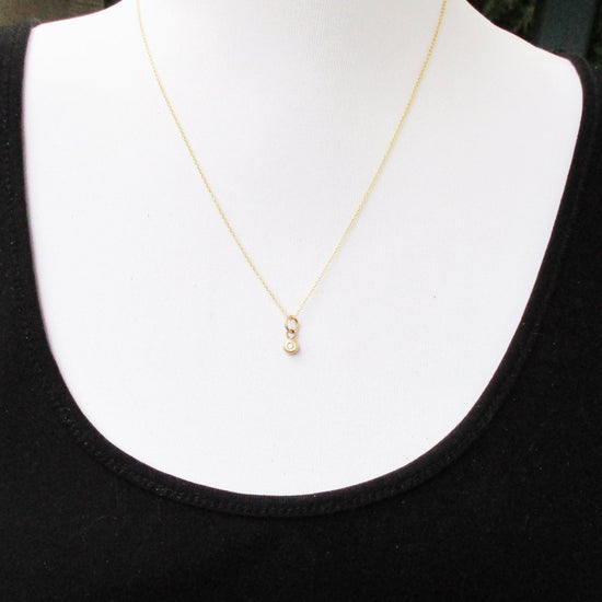 This beautiful diamond pendant is the perfect addition to any necklace or bracelet. This solid gold pendant features a flush set genuine diamond. The diamonds that we use are 3 point, VS1, H color or higher. These are high quality diamonds with good color and clarity. This faceted diamond gemstone is the birthstone for April.