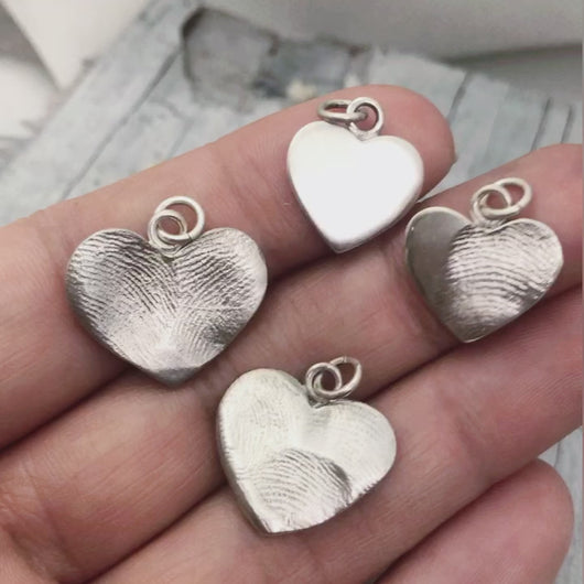 Heart Shaped Solid Silver Fingerprint Impression Pendant - Add 1 - 3 Fingerprints from different kids or people.