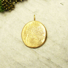 14k Gold Organic Oval Shaped Fingerprint Pendant from Flat Ink Print