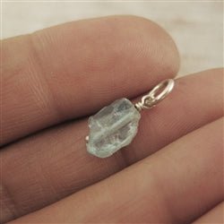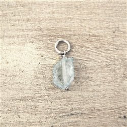 Raw Blue Apatite Gemstone Bead Charm with Sterling Silver Finding