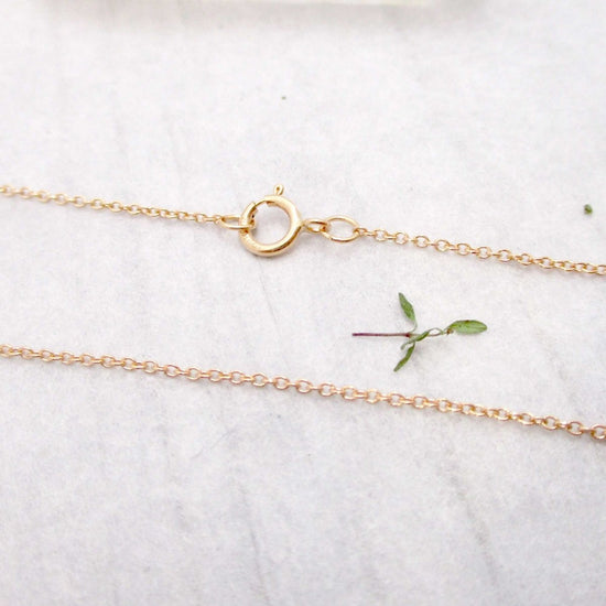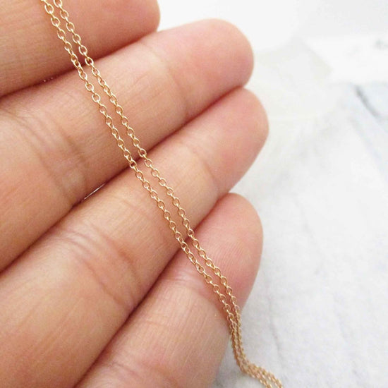 This 14/20 Gold Filled Rose Gold Necklace 1.1mm Cable Chain comes with a Spring Ring Closure. It's pink gold color goes with our 14 Karat Rose Gold charms.