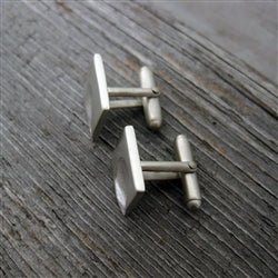 Square Silver Fingerprint Impression Cuff Links - Flipper Back