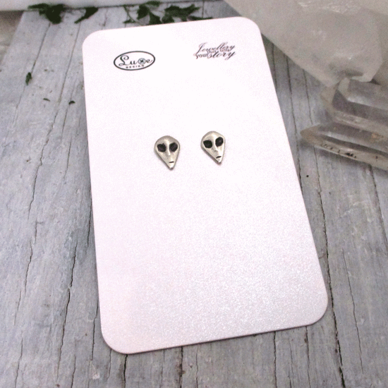Tiny Alien Post Earrings in Solid Sterling Silver, with Sterling Silver Butterfly Backs