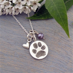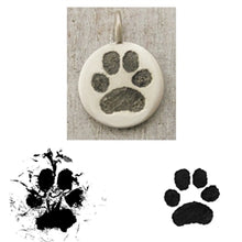 Create a precious one of a kind personal treasure using your own dog's or cat's paw prints! This pendant includes using your original print and custom lettering around the bottom.