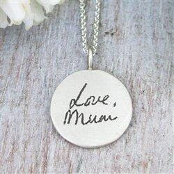 Use your child's handwriting, your mother's signature, a message from your father or a note from a grandparent, send it to us and we will turn it into a beautiful piece of handwriting jewellery that you will always treasure. You can also send drawings and even photos, and we will create a personalized, one of a kind pendant. Handwriting jewellery is a wonderful gift for a parent, to capture the fleeting moments of childhood. These handwriting pendants also make very precious memorial jewelry gifts. Because handwriting is so distinctive, it can really conjure and connect you to the memory of your loved one.